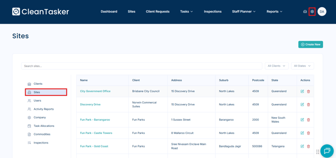 From the Homepage, click the gear icon in the top-right corner of the navigation bar.