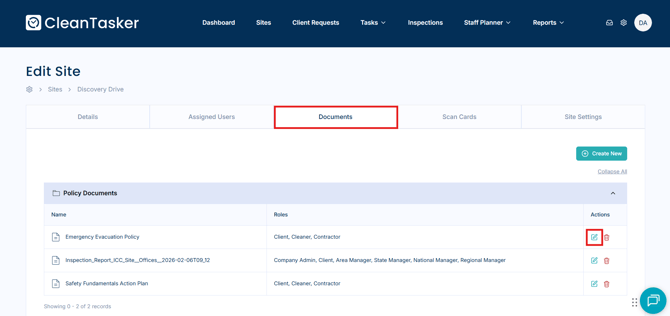 As an Admin, you can control which roles within your company have access to individual documents linked to a site. This ensures sensitive or role-specific documents are only visible to the appropriate users.