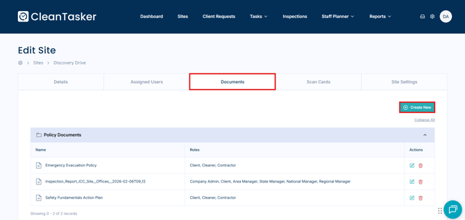 This guide explains how Admins can upload and attach documents to a site within the web application.