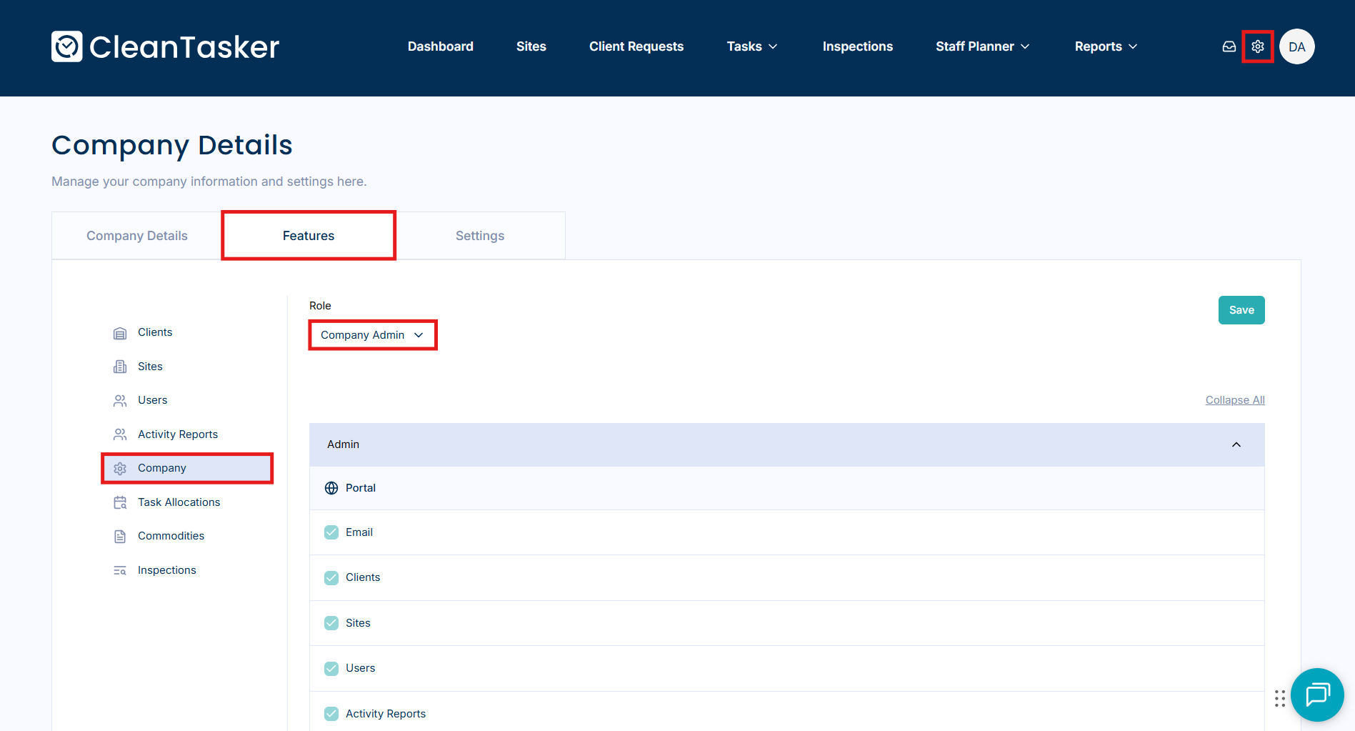The Features settings allow Admins to control which roles within the company have access to specific functionality in both the mobile application and the web application.