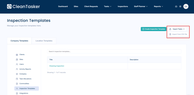 Click Import Tasks and select Import from CSV file from the drop-down.