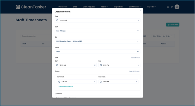 Quick guide to create and manage staff timesheets in your CleanTasker account.