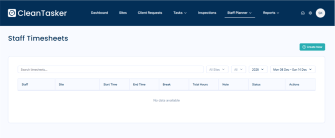- You can view timesheets by date, site, or staff member.