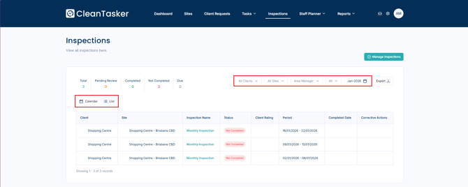 You’ll be taken to the Inspection Allocations page, where all scheduled and completed inspections are listed.