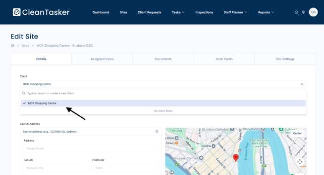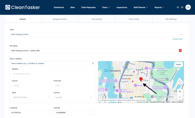 - Start typing the site address (e.g., "15 Castlereagh Street, Sydney NSW")