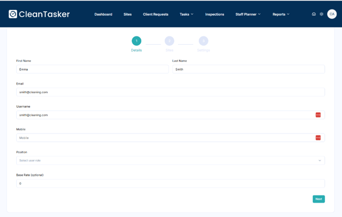 Learn how to create users, assign roles, and link them to sites in the CleanTasker Portal.