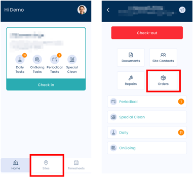 • Double-check the selected site before submitting to ensure the order is sent to the correct location.