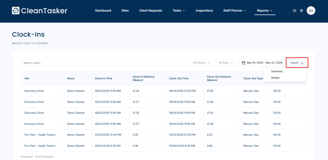 How to View and Export Clock-In Reports
