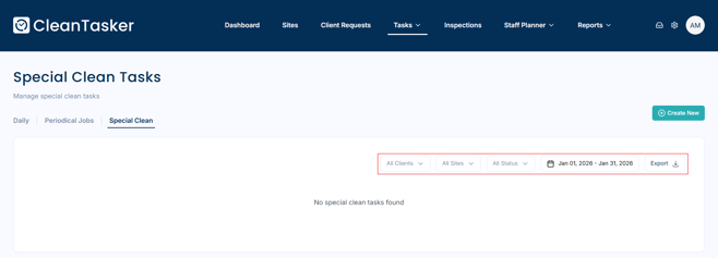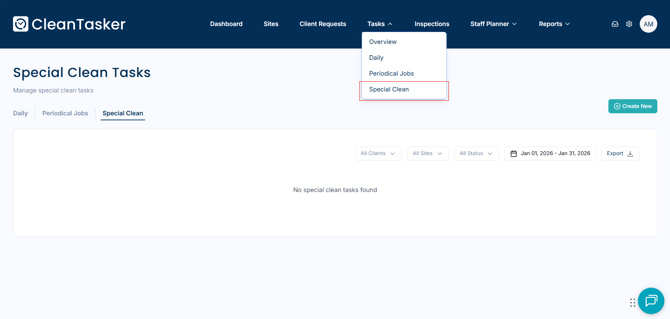 A Special Clean is a task designed to handle unique cleaning needs not covered by your standard contract with the client. These tasks are one-time activities, different from regular daily, weekly, or periodic cleaning, and they typically don't recur once completed.